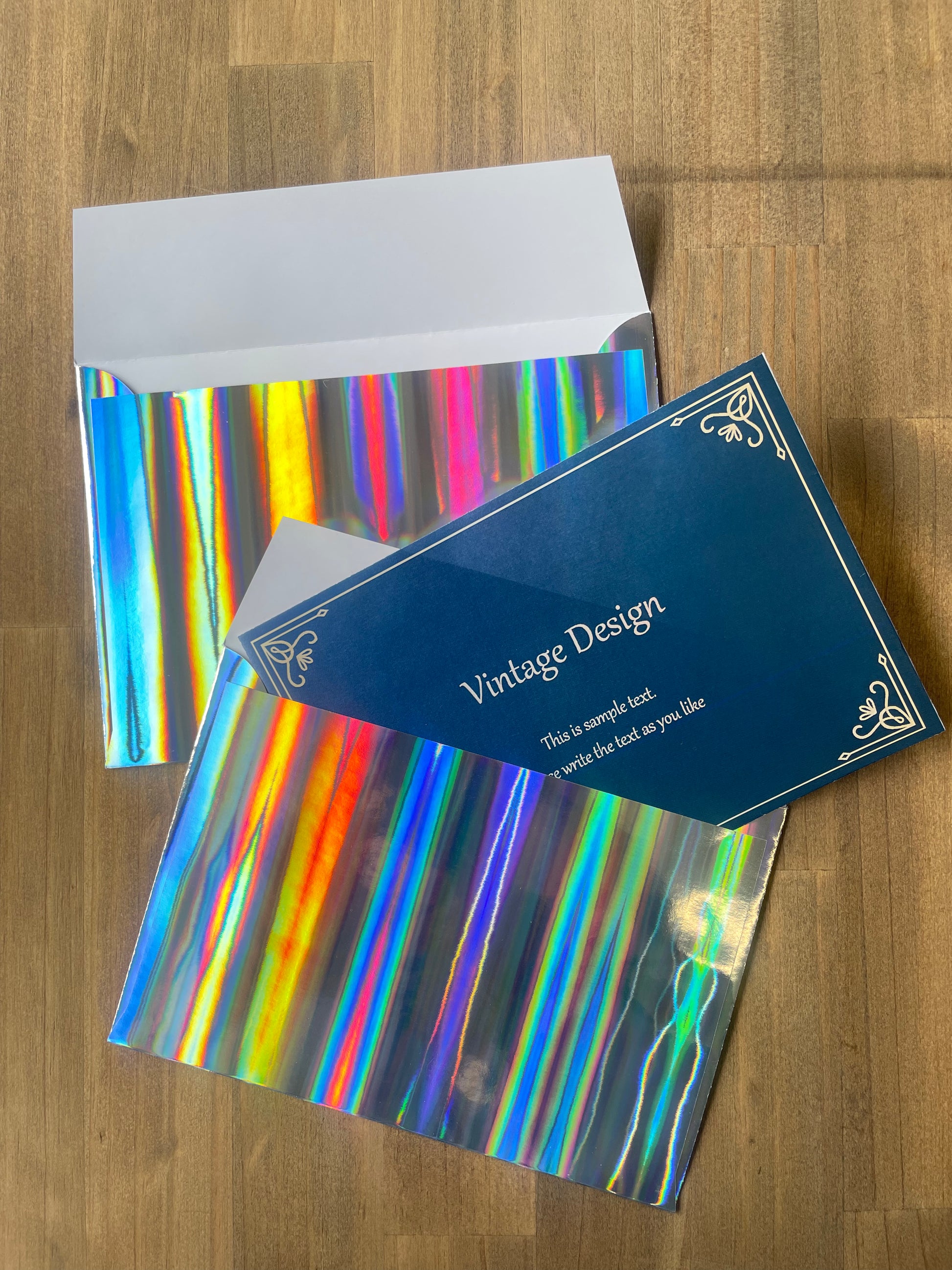 ホログラムの封筒は、普通の封筒とは一線を画す視覚的なインパクトがあり、特別感を演出するのに最適です。見る角度によって色が変化するホログラムはキラキラしていて渡すのも貰うのもワクワクします。